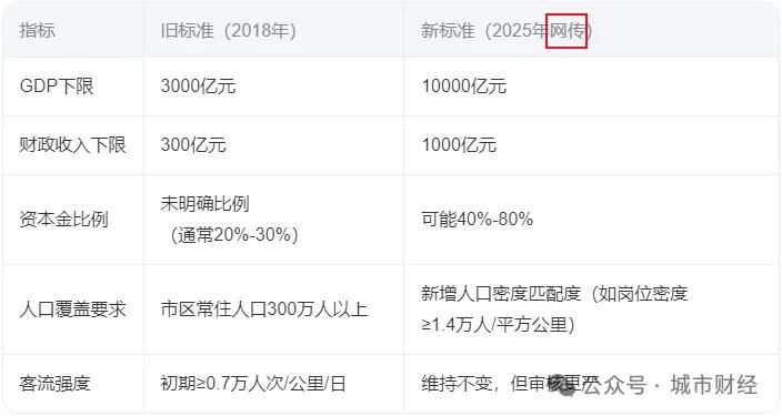 此外,还有传言,GDP、财政收入等门槛也大幅提高。GDP需要过万亿,财政收入需要过千亿。